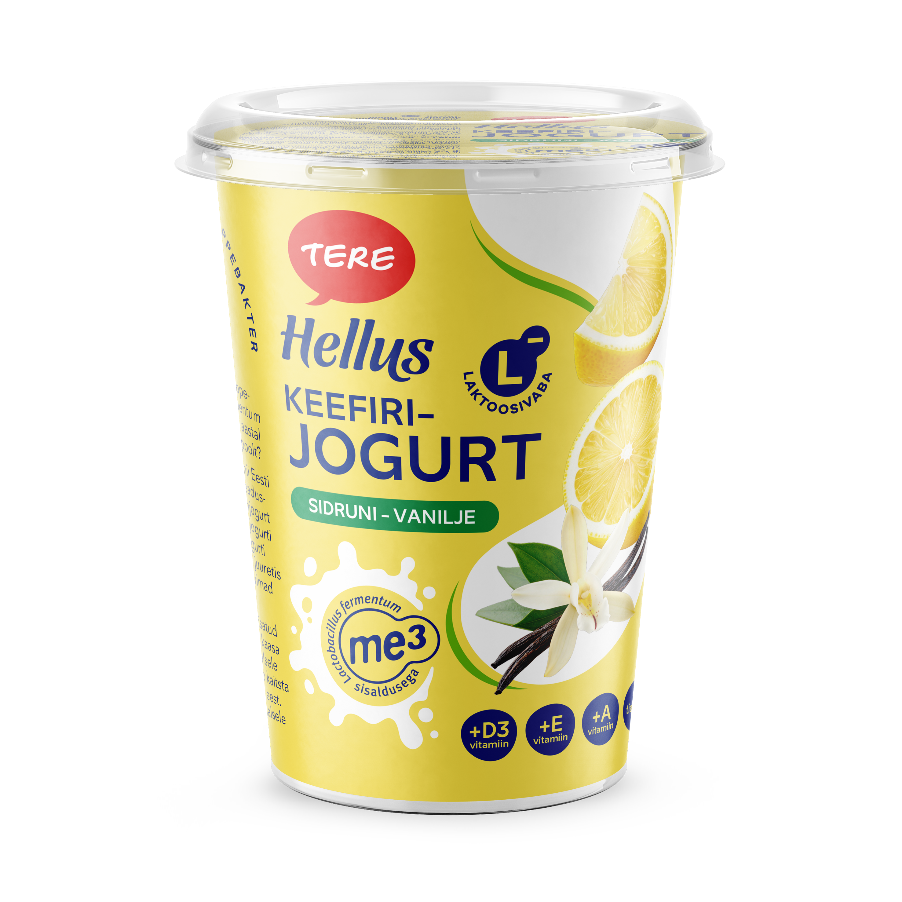MILK, sugar, lemon juice from concentrate 0.7%, lemon cells 0.6%, skimmed MILK powder, thickener (pectin), modified starch, natural flavouring, vanilla extract, colour (curcumin), acidity regulators (sodium citrate, calcium citrates), vitamins (A, E, D, thiamine), starter culture (contains Lactobacillus fermentum ME-3).