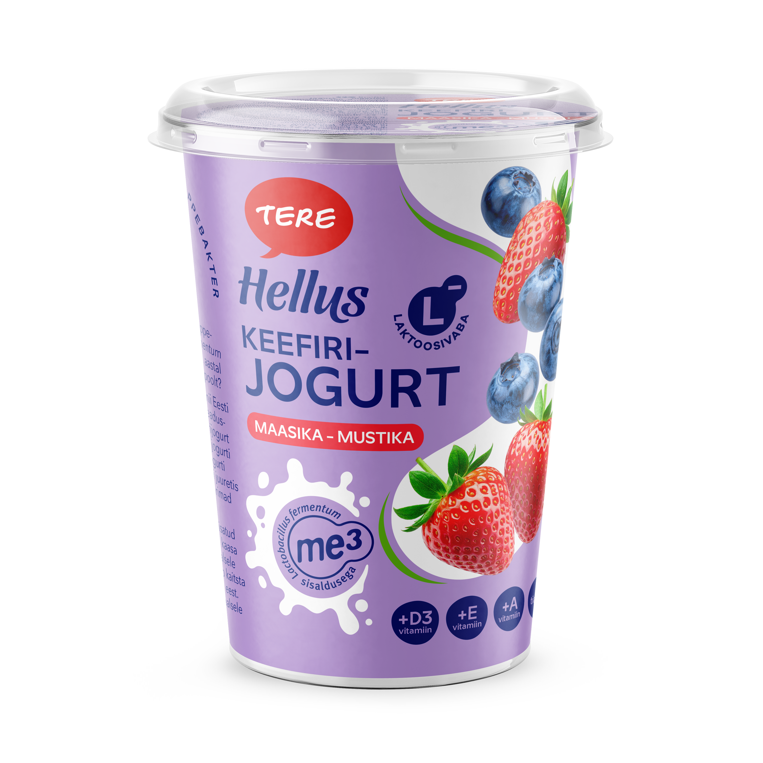 MILK, sugar, strawberries 3.3%, blueberries 1.7%, skimmed MILK powder, thickener (pectin), modified starch, natural flavouring, black carrot concentrate, acidity regulators (sodium citrate, citric acid), vitamins (A, E, D, thiamine), starter culture (contains Lactobacillus fermentum ME-3).