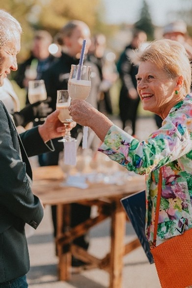 Meeleolu ja elevust jagus kogu õhtuks. Näiteks suurettevõtja Oleg Gross saabus koos osade külalistega kohale suisa helikopteriga! „Jah, vastab tõele,“ naerab Tea. „Oleg Grossi kopteri maandumine tekitas elevust nii peoliste kui ka möödakäijate seas. Ka tehase ette pargitud uhke Tere logodega piimaauto püüdis pilke juba kaugelt ning niimõnigi põlvakas tuli isegi lastega kohale, arvates, et linnas toimub festival. Maja ees tervitasid külalisi täispuhutav MuuMuu lehm ja ringi kalpsas lehmamaskott, kes lisasid peole mängulisust ja rõõmu. Peolaua eest hoolitses YliCOOL Catering, kes valmistas maitsvad suupisted Põlva tehase toodetest, näidates üles leidlikkust ja maitsetunnetust. Muusikalise poole eest kandsid hoolt ansambli „Kõhukesed“ solistid, kelle rahvalik energia hoidis tuju kõrgel ning lõbusat elevust tekitas viktoriin kiiruse peale, kus nii mõnigi sai teada, et ansambel Ummamuudu sai alguse just Põlva piimatööstusest ja et esimesed Põlva missivalimised toimusid Põlva tehase saalis ning olid lausa nii populaarsed, et kestsid lausa kaks päeva!“ jutustab Tea.